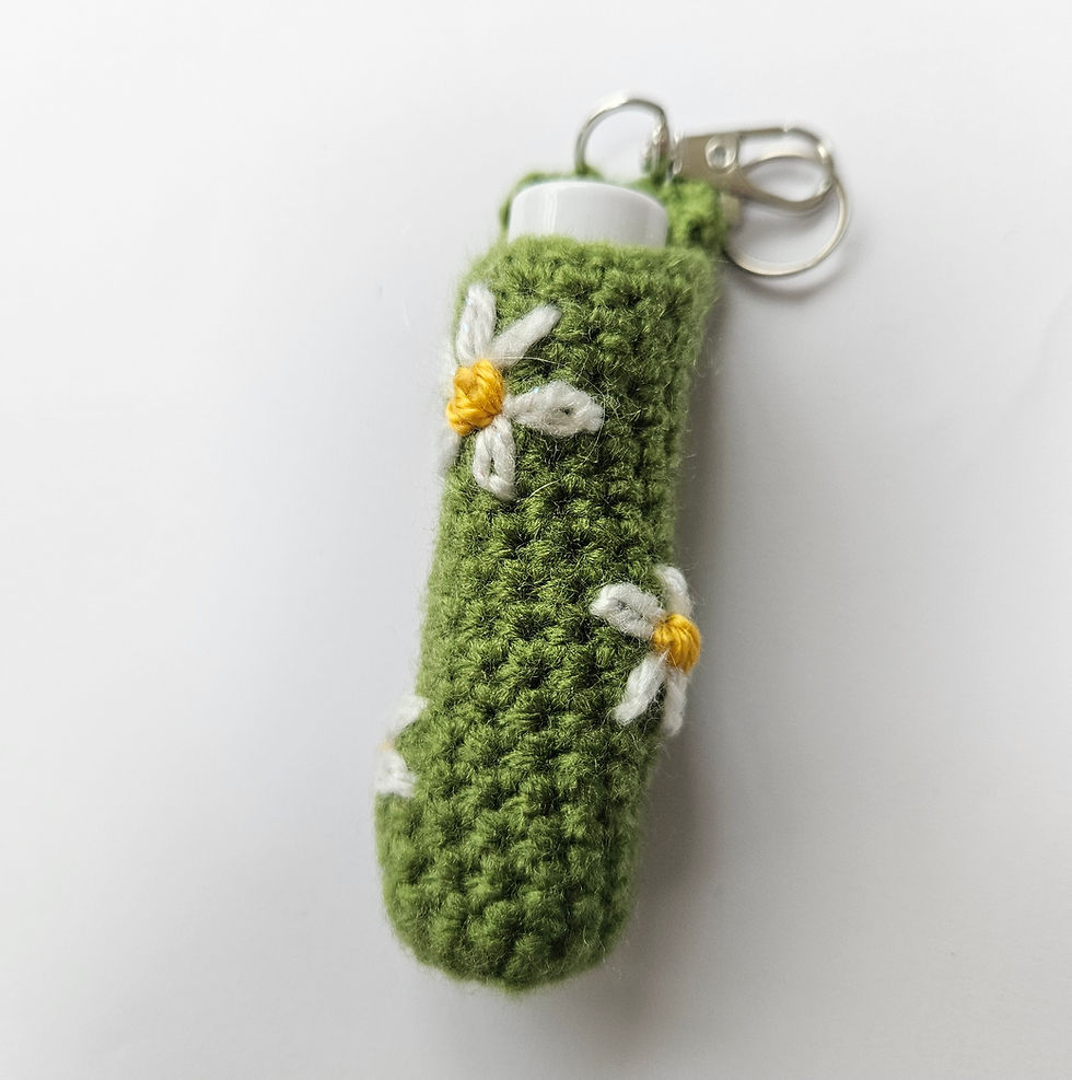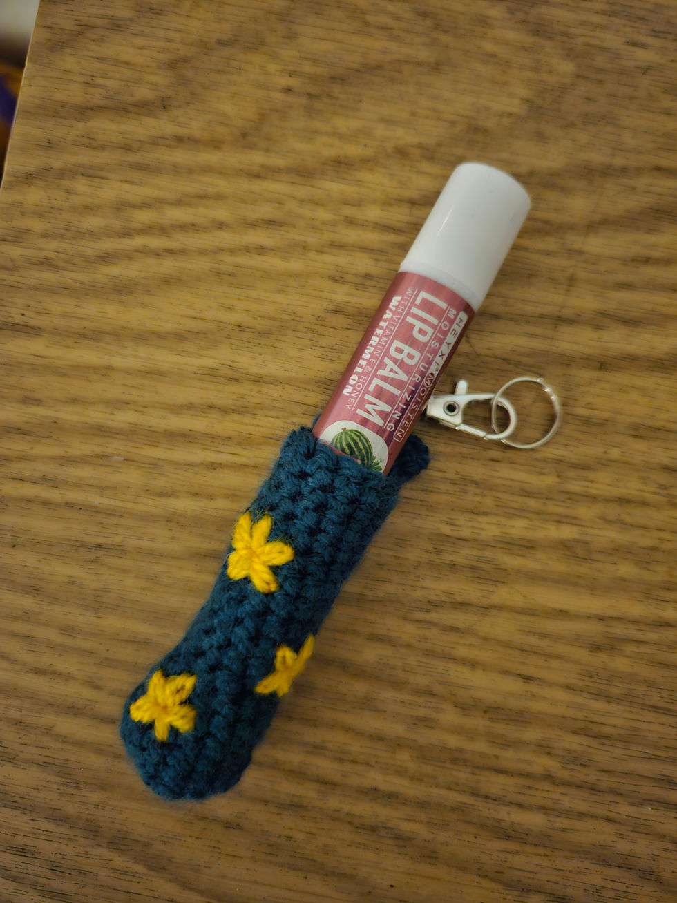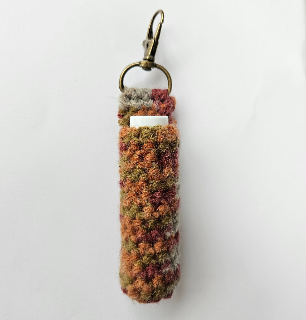 NEW - she now makes the most useful item for yourself or for the perfect gift. The new crochet lip balm holders, have been selling like hot cakes, as they are so handy, as who can ever find their lip balm in their bag? These brightly coloured holders, clip on to bags, phones, jackets, so you always have yours at hand!